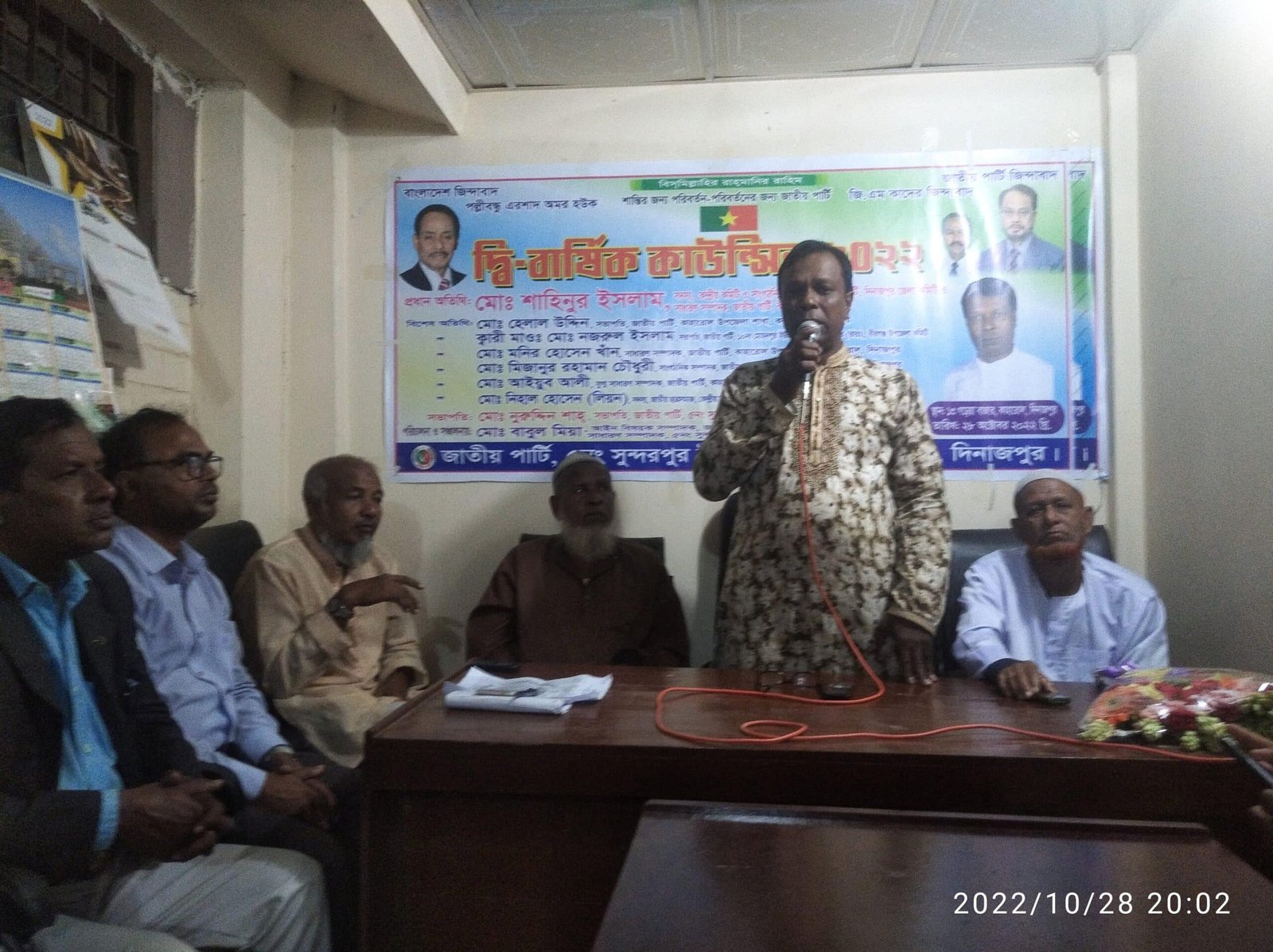 হ্যালো 24 নিউজ।। ২৮ অক্টোবর/২০২২ সন্ধ্যা ৭-০০টায় কাহারোল উপজেলার তেরমাইল গড়েয়া বাজারে জাতীয় পার্টি ৫নং সুন্দরপুর ইউনিয়ন কমিটি আয়োজিত দ্বিবার্ষিক কাউন্সিলে প্রধান অতিথি হিসেবে উপস্থিত থেকে বক্তব্য দেন জাতীয় পার্টির কেন্দ্রীয় সদস্য, বীরগঞ্জ জাপা’র সাধারন সম্পাদক, দিনাজপুর জেলার সাংগঠনিক সম্পাদক এবং জাতীয় সংসদ নির্বাচনে দিনাজপুর-১ আসনে সংসদ সদস্য পদে একাধিকবারের প্রতিদ্বন্দ্বী মোঃ শাহিনুর ইসলাম। বিশেষ অতিথি হিসেবে উপস্থিত ছিলেন বীরগঞ্জ উপজেলা জাতীয় পার্টির ভারপ্রাপ্ত সভাপতি ক্বারি মাওঃ মোঃ নজরুল ইসলাম, কাহারোল উপজেলা জাপার সাধারণ সম্পাদক মনির হোসেন খাঁন, বীরগঞ্জ উপজেলা জাপার সাংগঠনিক সম্পাদক মোঃ হাবিবুর রহমান হাবিব ঢালি, কাহারোল উপজেলা জাপার সাংগঠনিক সম্পাদক ও ইউপি সদস্য মোঃ মিজানুর রহমান চৌধুরী, গোলাপগঞ্জ আঞ্চলিক কমিটির সাধারণ সম্পাদক রতন কুমার দাস, ছাত্র সমাজের কেন্দ্রীয় সদস্য ও বীরগঞ্জ উপজেলা জাতীয় ছাত্র সমাজের সভাপতি মোঃ নিহাল হোসেন লিয়ন।